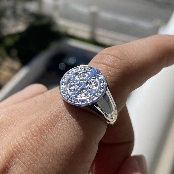 Anel de São Bento Banho de Prata 925 Anel Masculino Banhado Anel Cravejado Dedeira