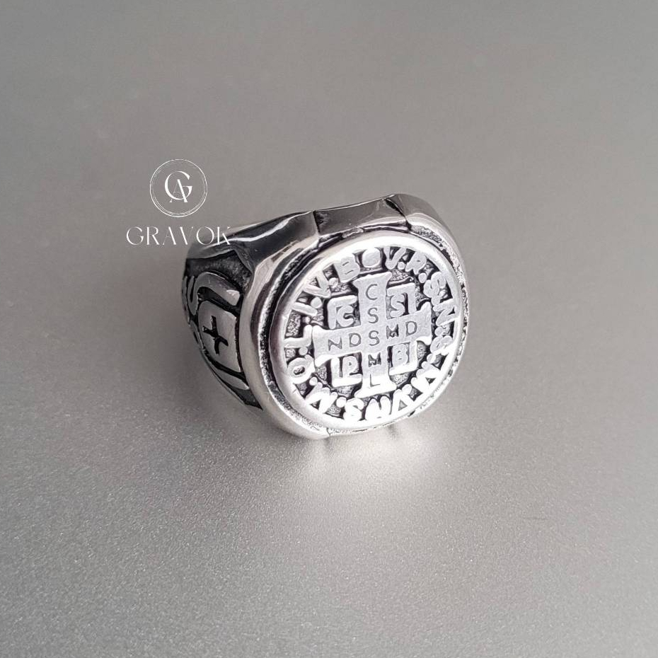 Anel Masculino De Prata 925 São Bento Banhado a Prata 925 Italiana Anel De São Bento Dedeira