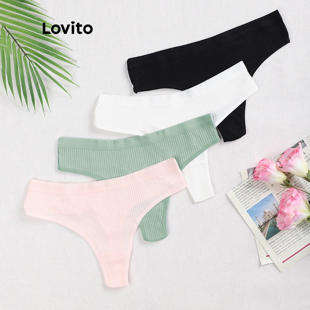 Lovito Calcinhas Sexy de Correia Sólida com Elasticidade Alta Thongs em Algodão& Cordas em V L00303 (Rosa/Verde)