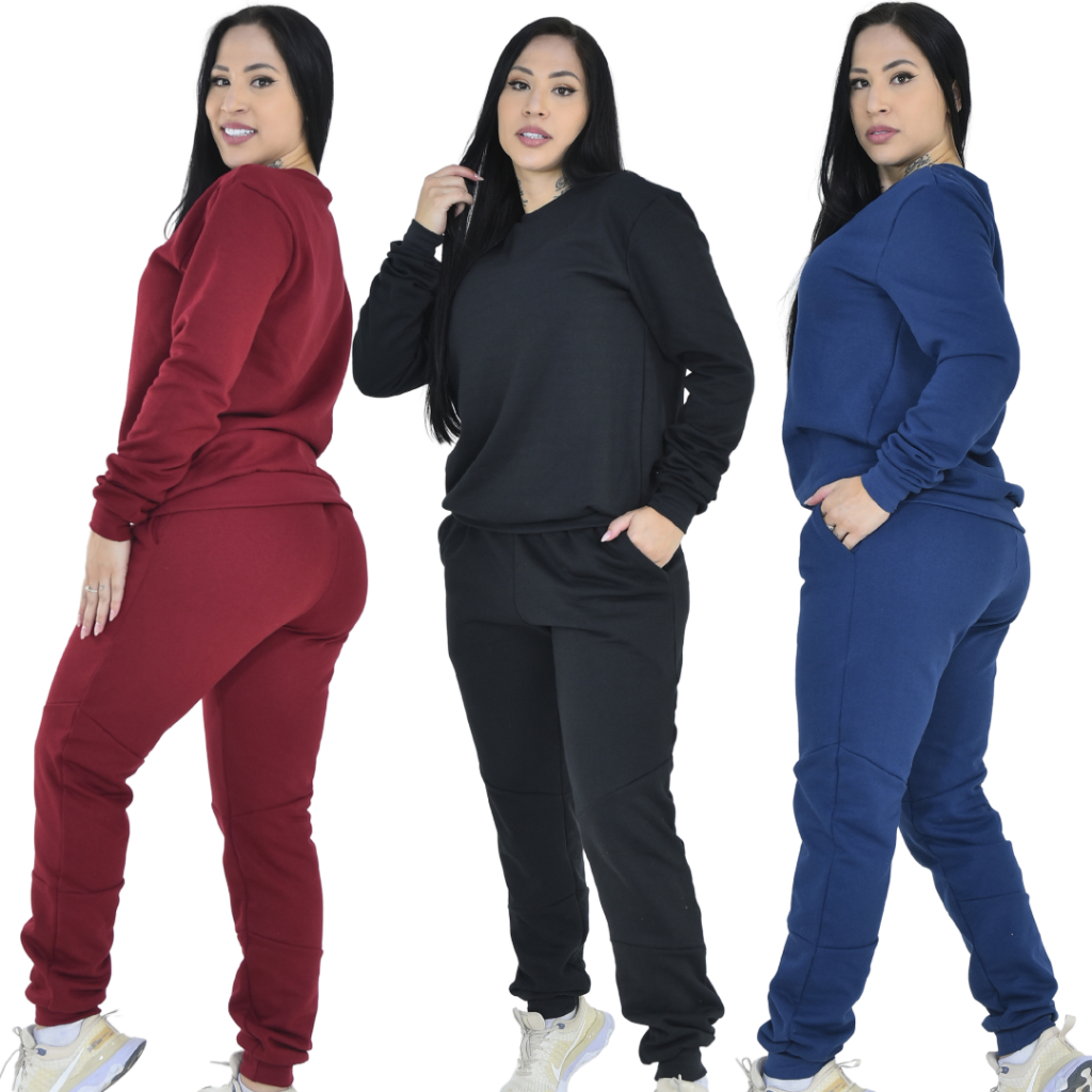 Kit Conjunto Blusa Moletom e Calça Moletom Feminino de Frio Flanelado