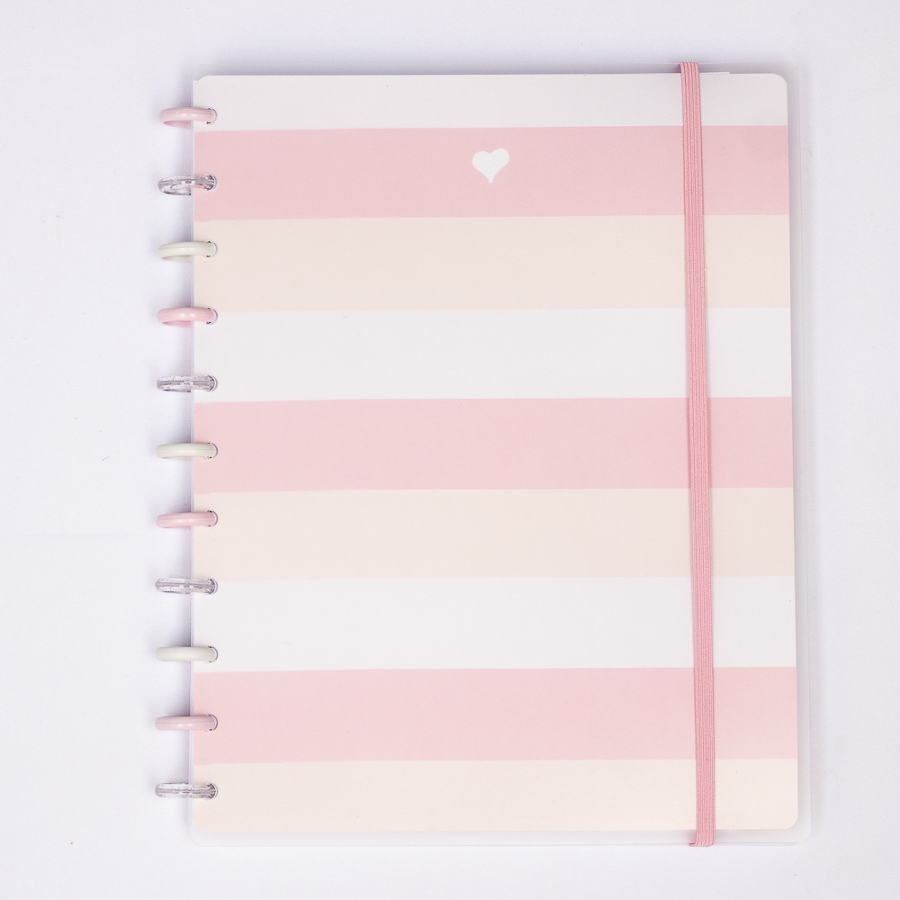 Caderno de disco Basic Rosa listrado Folhas Reposicionáveis