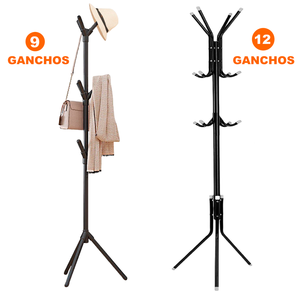Cabideiro de Chão Mancebo 9 Ganchos Reforçado Para Roupas Bolsas Chapéus