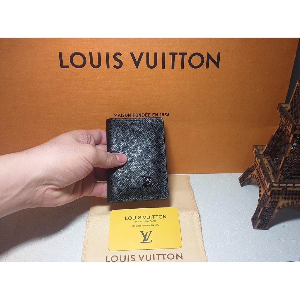 Porta Cartões Slim Flap Louis Vuitton Masculino Texturizado Couro Sintético Preto Granulado Lv Baixo Relevo Carteira