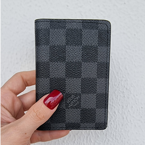 Porta Cartões Louis Vuitton Masculino Couro Canvas Xadrez Preto E Marrom