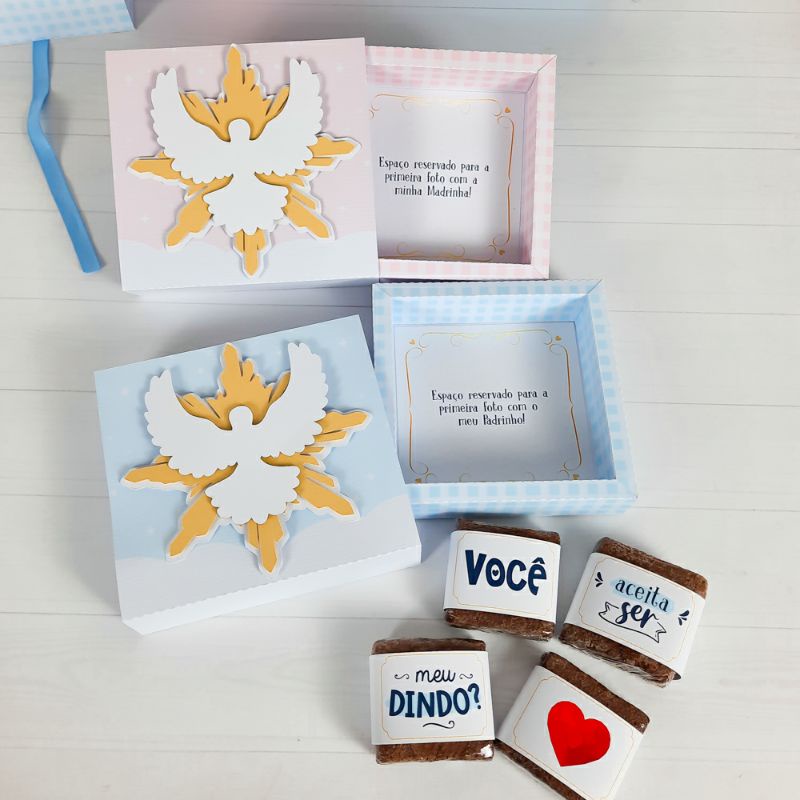 Caixa convite padrinho ou madrinha de batismo/batizado para 4 brownies