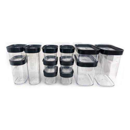 Kit Conjunto Cozinha 12 Potes Herméticos de Acrílico para Mantimentos - Preto