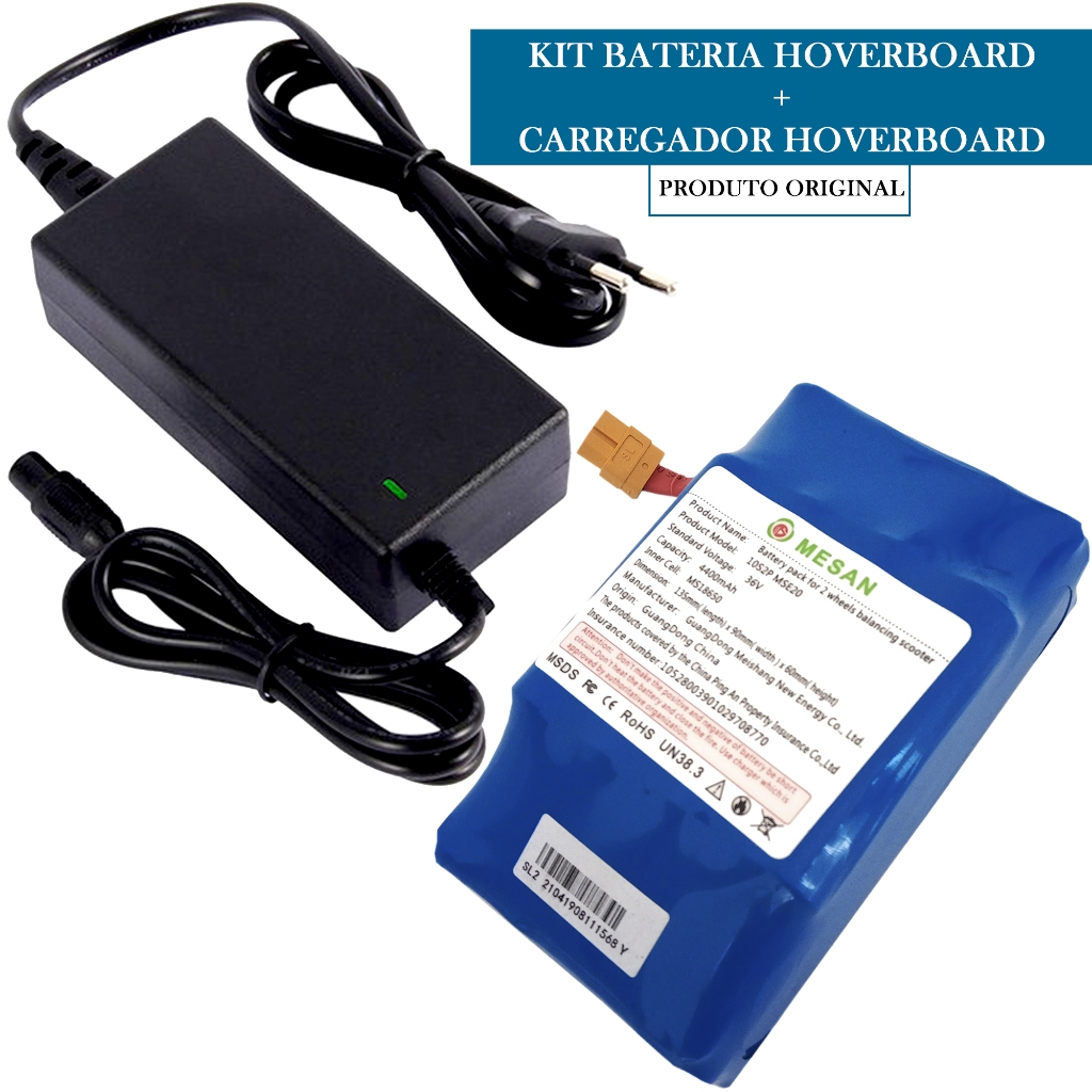 Kit Carregador + Bateria de Hoverboard Skate Elétrico 6,5' 8' 10' Polegadas com Bluetooth LED