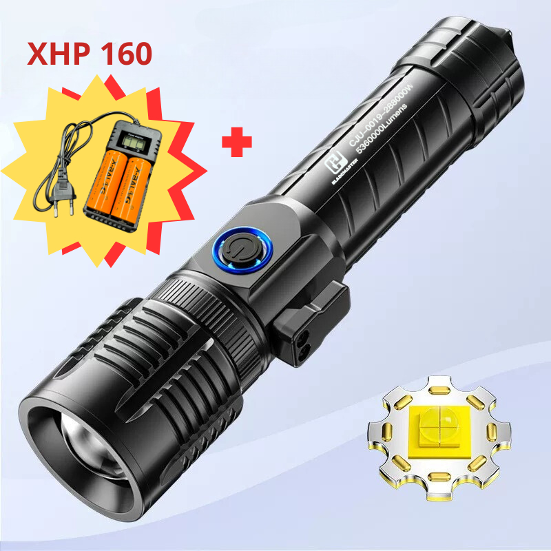 Lanterna XH P160 Lampada Led C/Corta Fio E Quebra Vidro Multifuncional+Vem com um carregador de bateria e duas baterias 26650