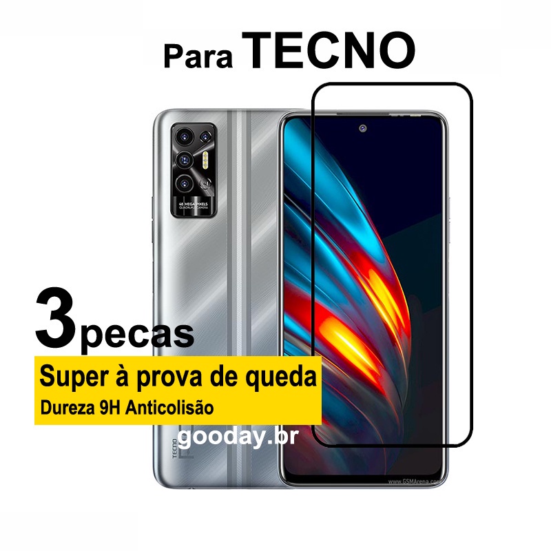 Película De Vidro 3 Em 1 TECNO Camon 17 Pro Pop 5 LTE Pova 3 2 Spark 6 Go 8 8P 18 18P Cobertura Total Temperado
