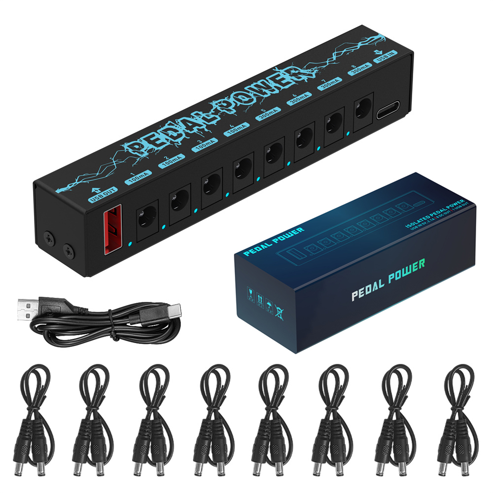 Fonte De Alimentação Com Pedal De Guitarra 8 Saída Isolada DC 9V 100mA/300mA Para Pedais De Efeito Porta De Carregamento USB