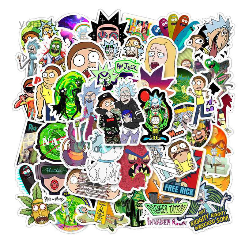 50 Pçs Adesivo do Desenho Rick & Morty para Laptop /Pranchas / Mala / Bike / Geladeira / Scrapbook