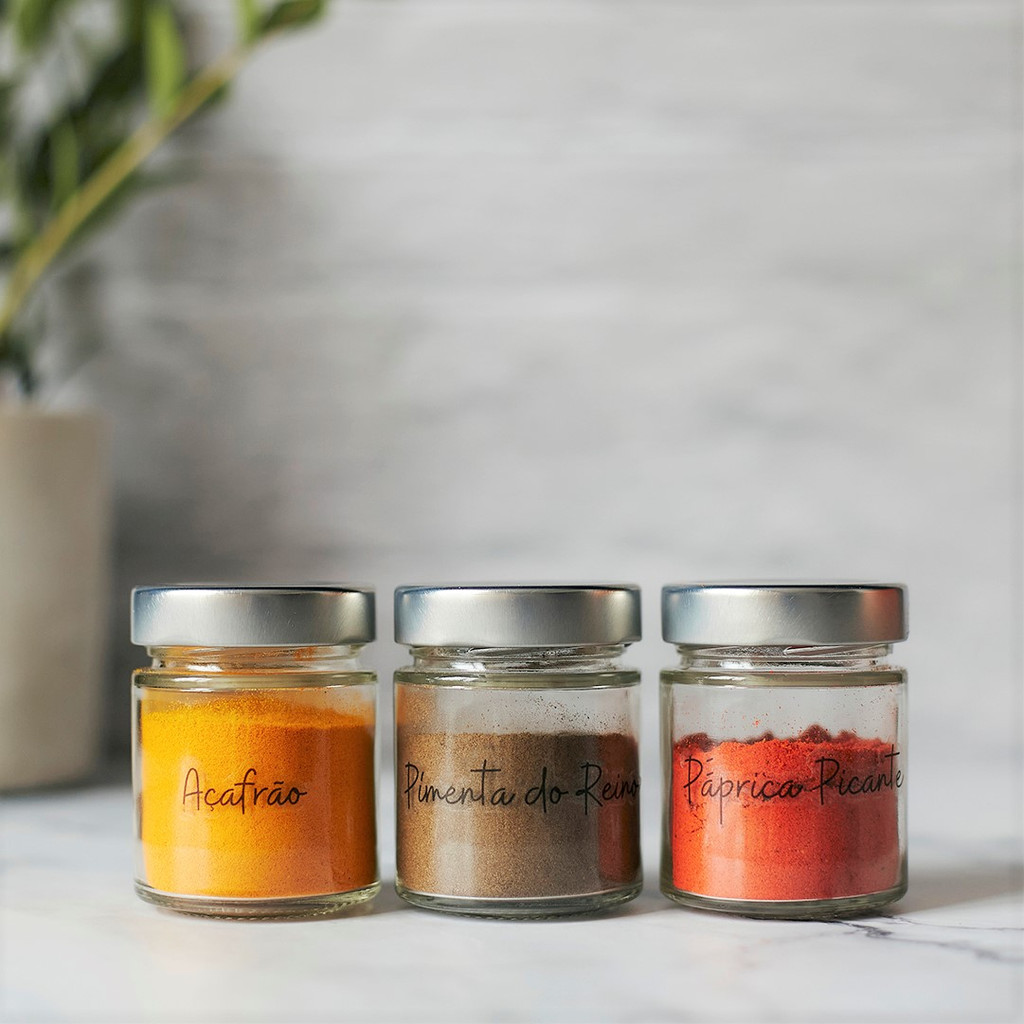 Kit 10 Porta Temperos Condimentos c/ 32 Adesivos de Temperos Potes de Vidro Organizador