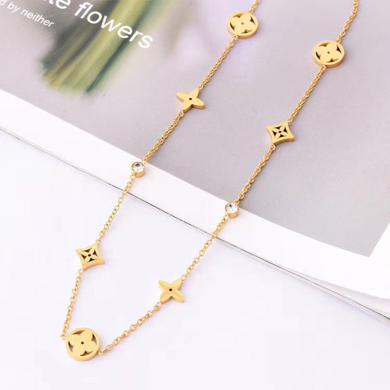 Colar de Aço Titânio de Quatro Folhas com Estilo Luxo Leve Colar de Aço Titânio de Quatro Folhas com Estilo Fashionable Diamond-Studded Exquisite All-Match