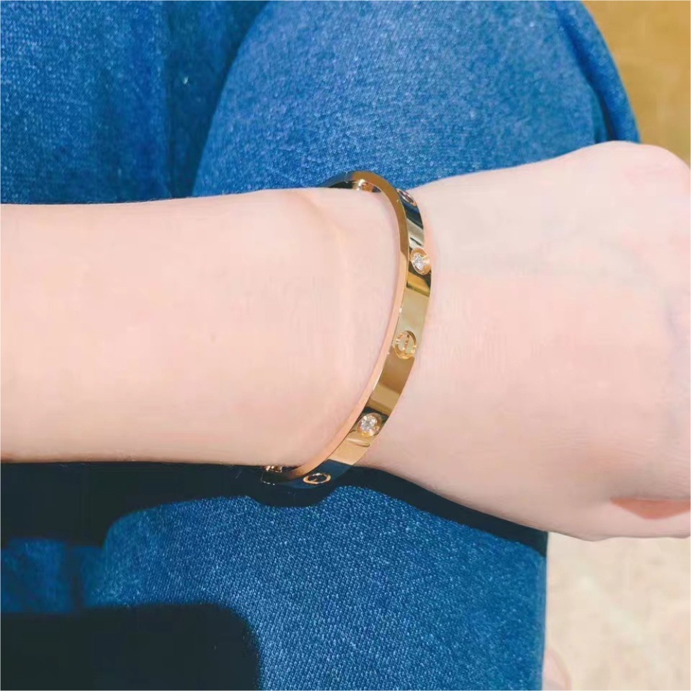 Moda Luxo Aço Titânio Revestido A Pulseira De Ouro Rosa 18K Exquisite Diamond-Studded Hand Friendly Cor Fade-Free Couple