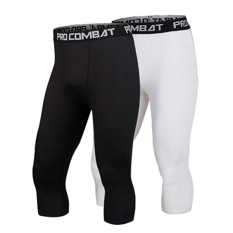 Calças De Compressão Masculinas Suor Ciclismo Esportivo Corrida De Basquetebol Elástico Futebol Skinny Leggings Homens 3/4