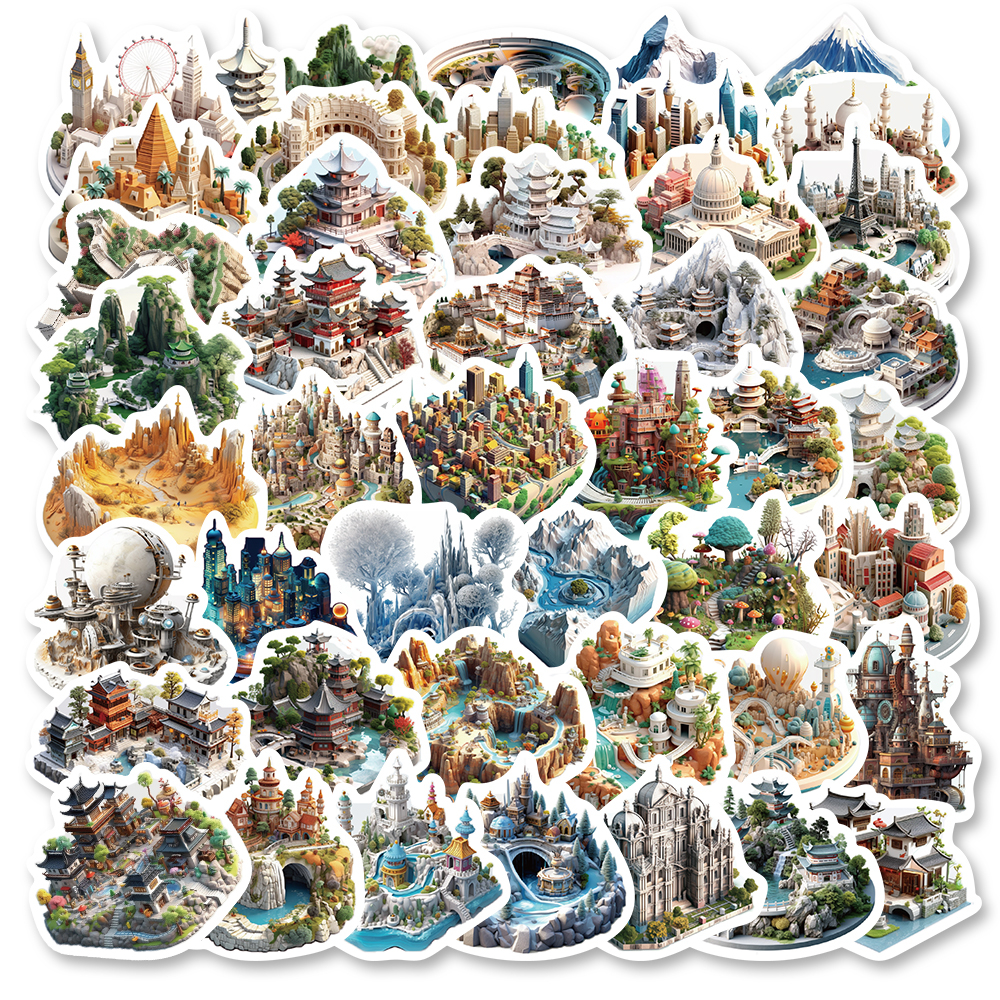 Adesivo Decorativo À Prova D'água Para notebook De 50pcs Small World , Decorado E Requintado , Com Conta Manual De Copos De Água