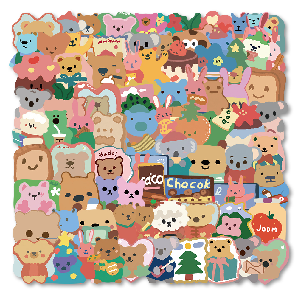 100pcs Adesivo De Ursinho Fofo E Decorado Para notebook De Copos De Água Com Conta Manual Requintadamente Decorativo À Prova D'água