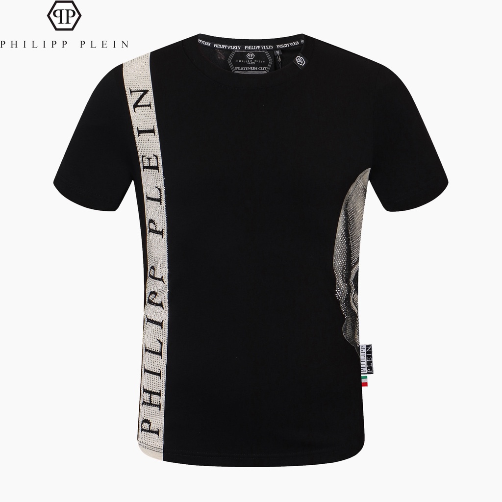 Novo Estilo Verão PHILIPP PLEIN Camiseta De Manga Curta Masculina Top Slim-Fit Algodão Puro Gola Redonda Confortável Elasticidade Respirável De Alta Qualidade
