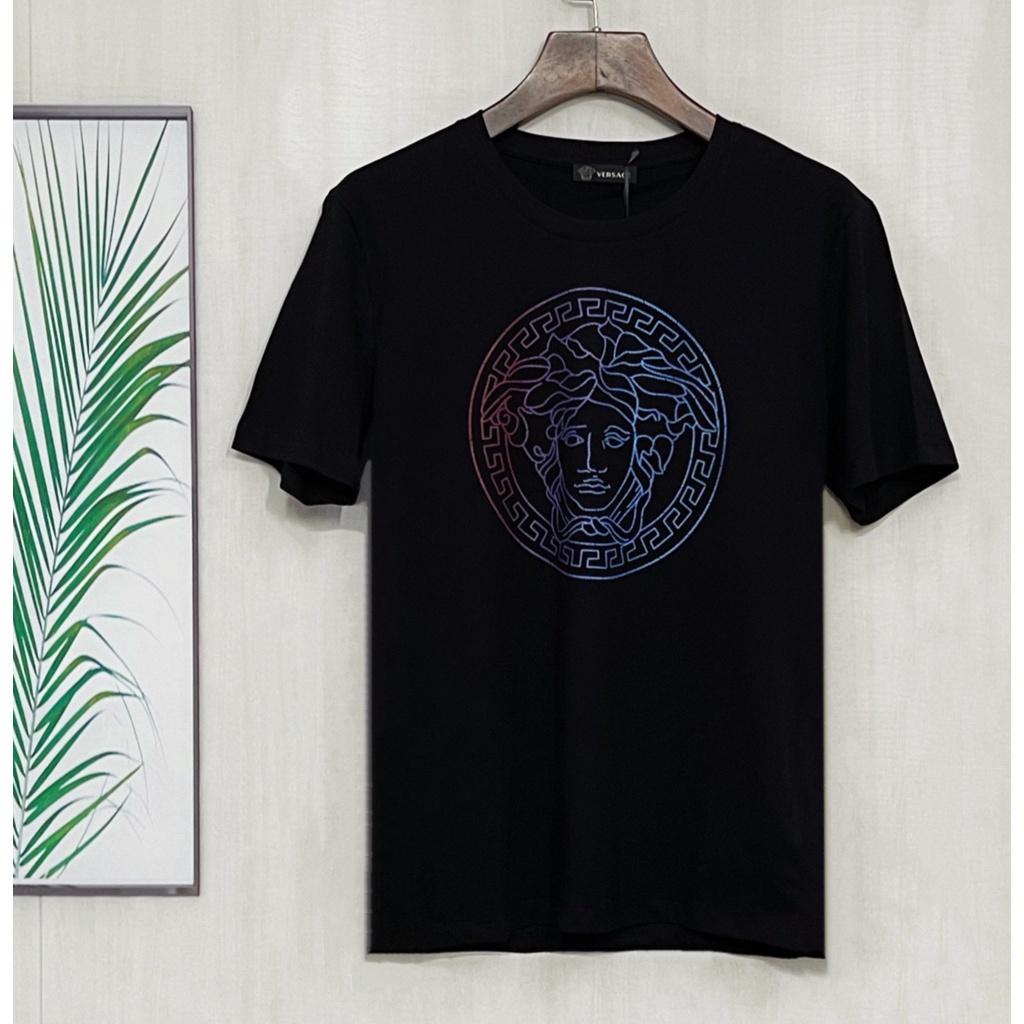 VERSAC Verão Novo Estilo Cor Combinando A Cabeça Medusa Gola Redonda Camiseta De Manga Curta Masculina