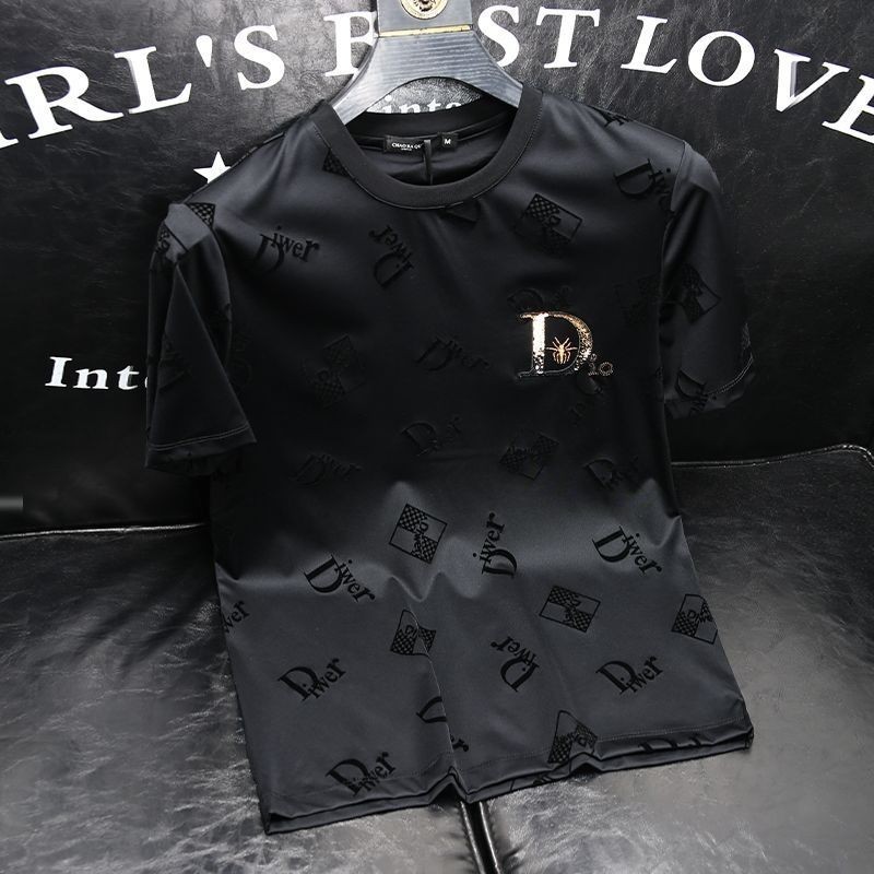Verão 2024 Novo Estilo Masculino Camiseta de Manga Curta Masculina de Gola Redonda Alta Seda Camiseta Slim-Fit Meia Manga Moda Masculina Top