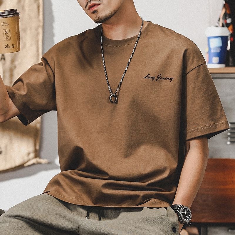 Camiseta de manga curta de algodão Camiseta de manga curta respirável Moda masculina de rua Vestir Casual de Verão Novo Estilo Lo