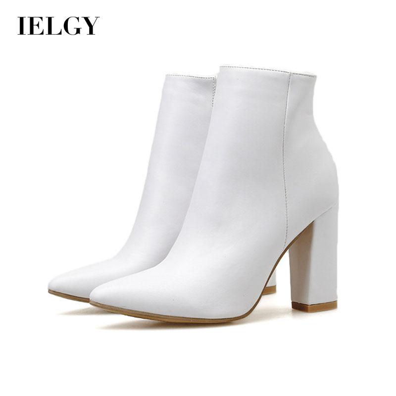 IELGY Botas Curtas Das Mulheres Elegante Versátil Branco De Salto Alto 10 cm Calcanhar Grosso Zipper Couro Pu Macio