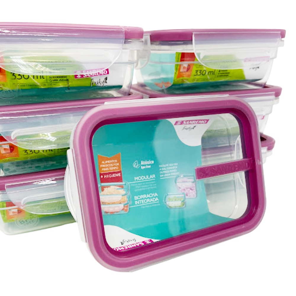 Pote Plástico Com Travas Empilháveis Marmita 330ml Sanremo - Envio Imediato