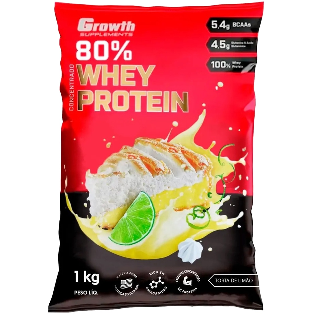 Whey Protein Torta De Limão 80% Proteína Concentrado 1Kg Growth Suplementos Original