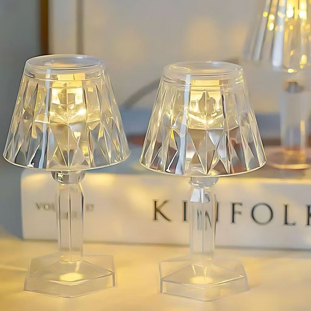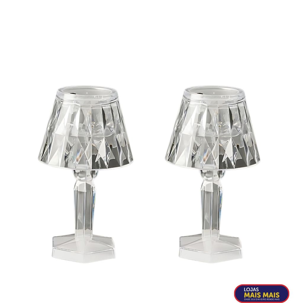 Kit 2 Mini Abajur Cristal Luz Led Suave Quarto Decoração