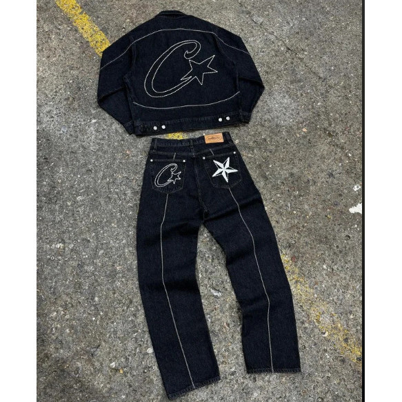 Corteiz Alcatraz cross-border street hip - hop jeans vintage estrela bordada larga - calças de pernas largas calças casuais largas