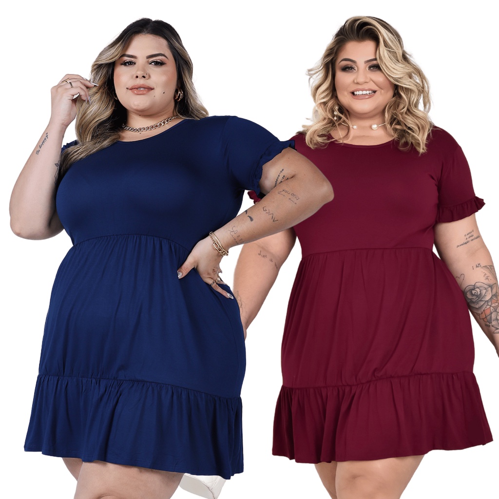 Vestido Plus Size Liso Babado Soltinho Moda Evangélica Até Extra Grande