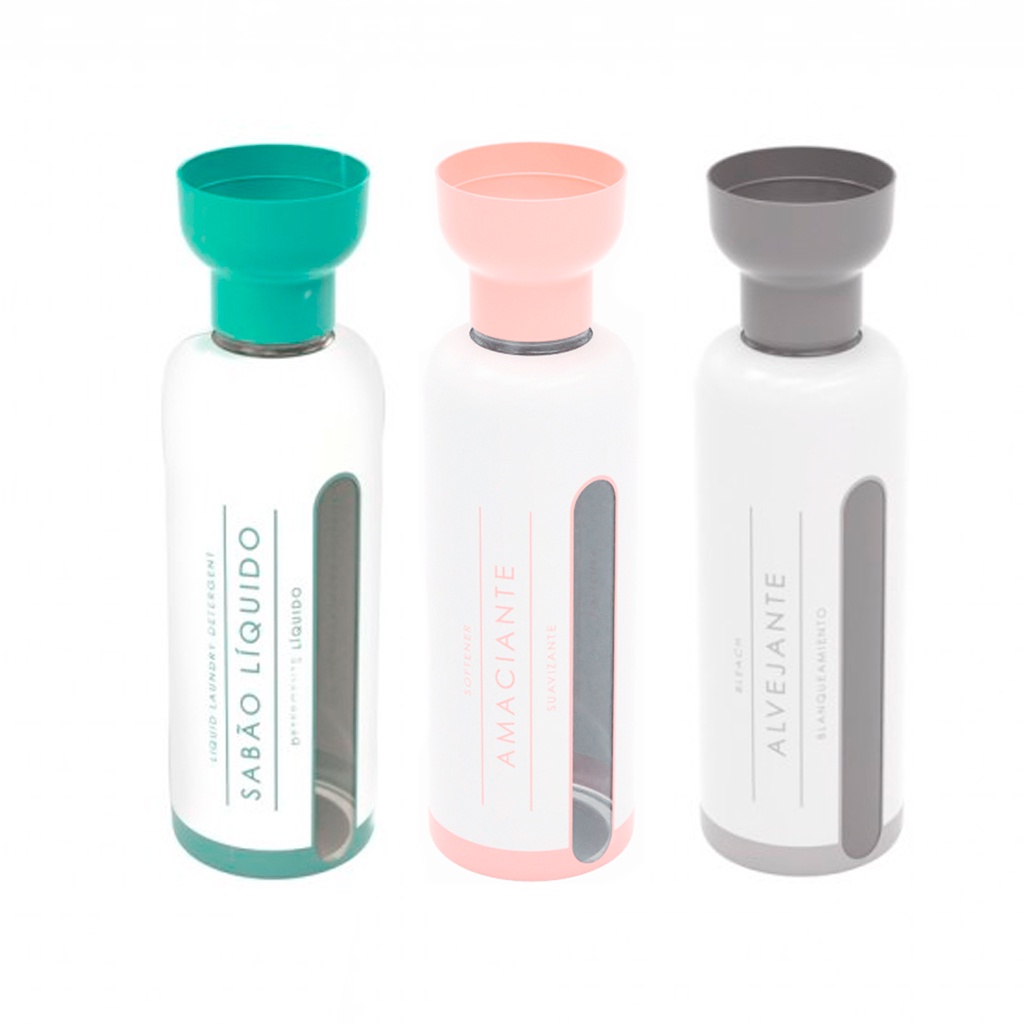 KIT LAVANDERIA sabão líquido amaciante e alvejante refil FRASCO AMBAR DECORAÇÃO MINIMALISTA