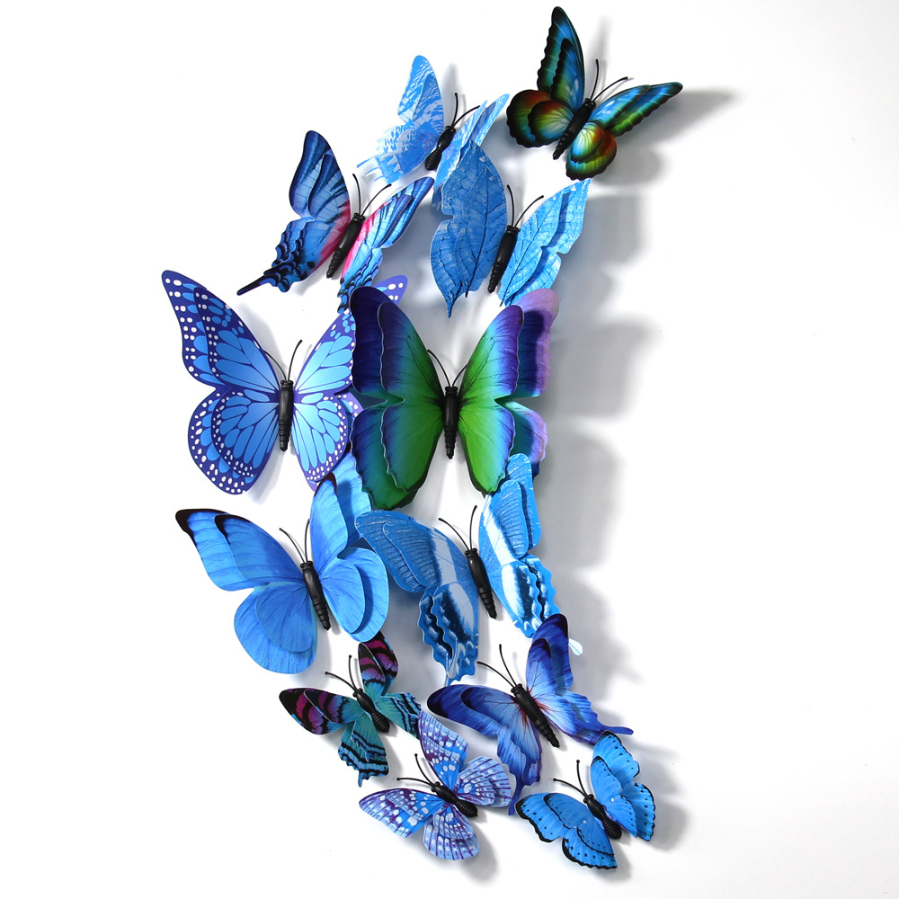 12 peças de borboleta artificial, adesivo de parede de fita dupla face, adesivo de geladeira, artesanato decorativo de fundo de casa, borboleta de plástico de pvc