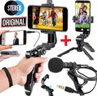 Estabilizador de Mão Steadicam Tripé Profissional Celular Smartphone + Microfone Lapela Gravação de Vídeo Youtuber Vlog