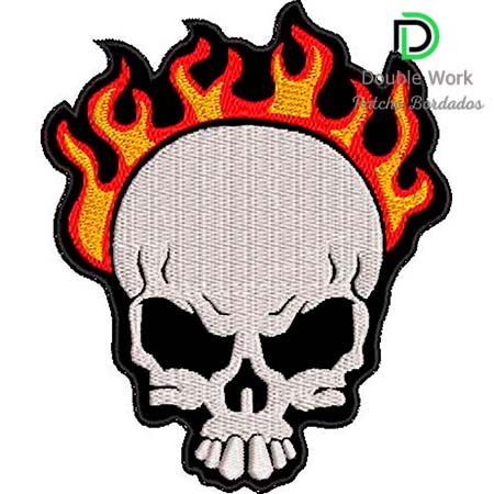 Patch Bordado Fire skull Caveira em chamas 12x10 cm Cód.1390