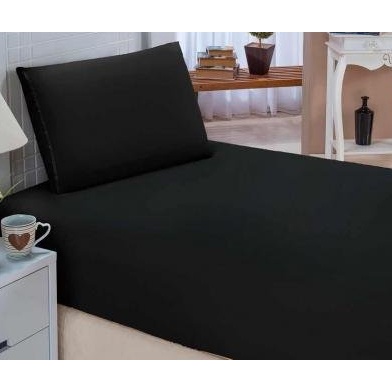 Jogo de Cama Solteiro Lençol Solteiro Padrão 2 Peças 170 Fios Com Elástico - Preto