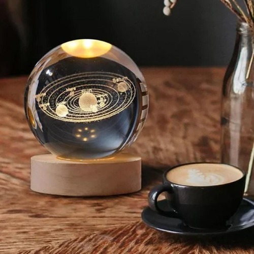 Mini Luminária 3D De Mesa Quarto Led Bola De Cristal Decorativa Planeta Solar Fada