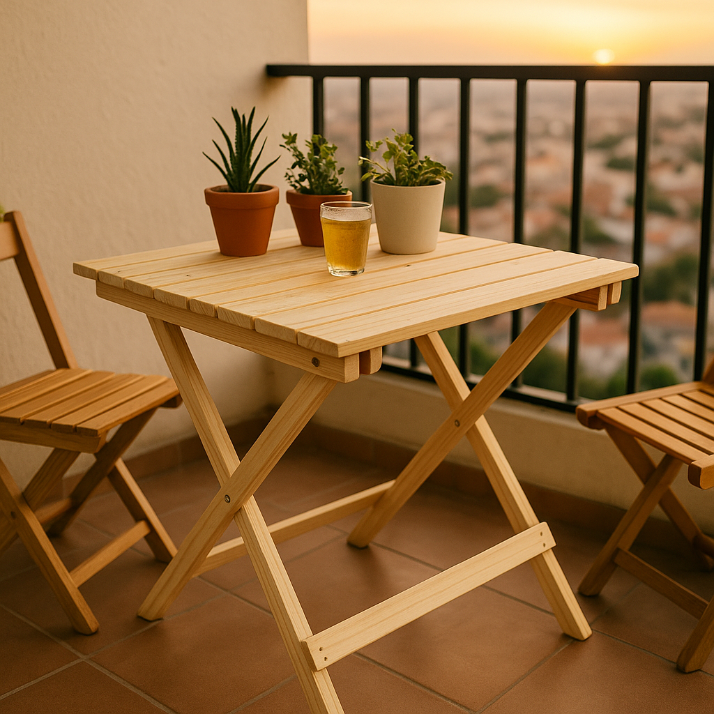 Mesa de Madeira Dobrável Multiuso 60x60 Pinus Maciço para Área Gourmet e Festas