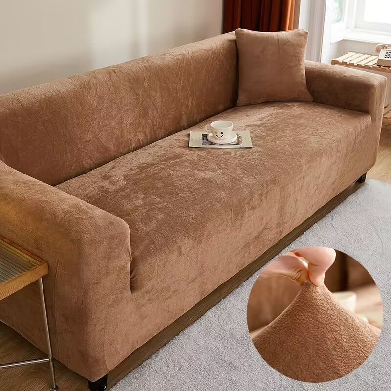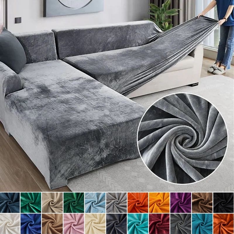 Capa De Sofá De Veludo Elástico Espesso De 1/2/3/4 Para Sala De Estar Canto Em Forma De L De Pelúcia