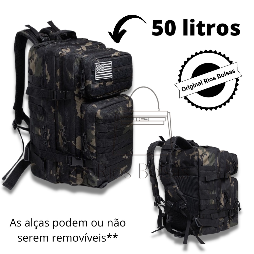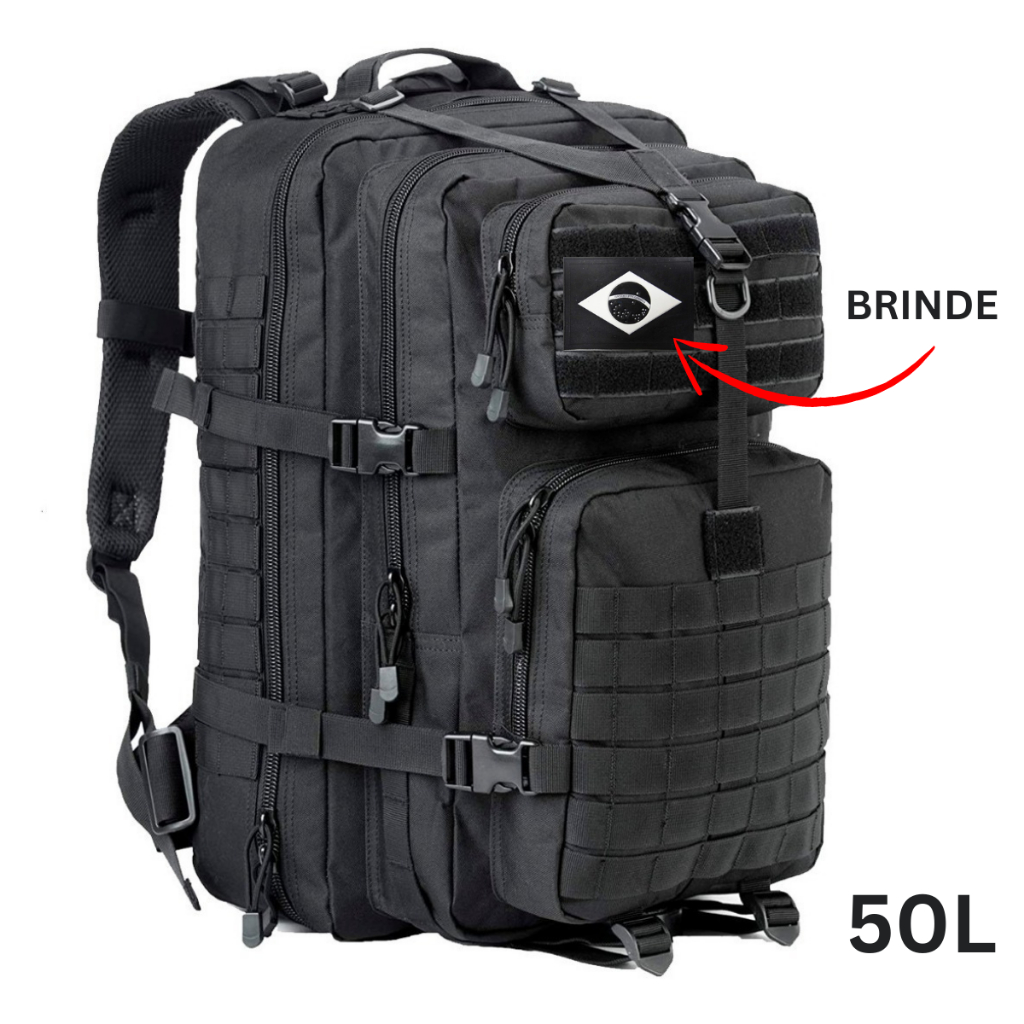 Mochila Militar Tática 50 Litros Grande Impermeável Reforçada com Bandeira Qualidade Premium