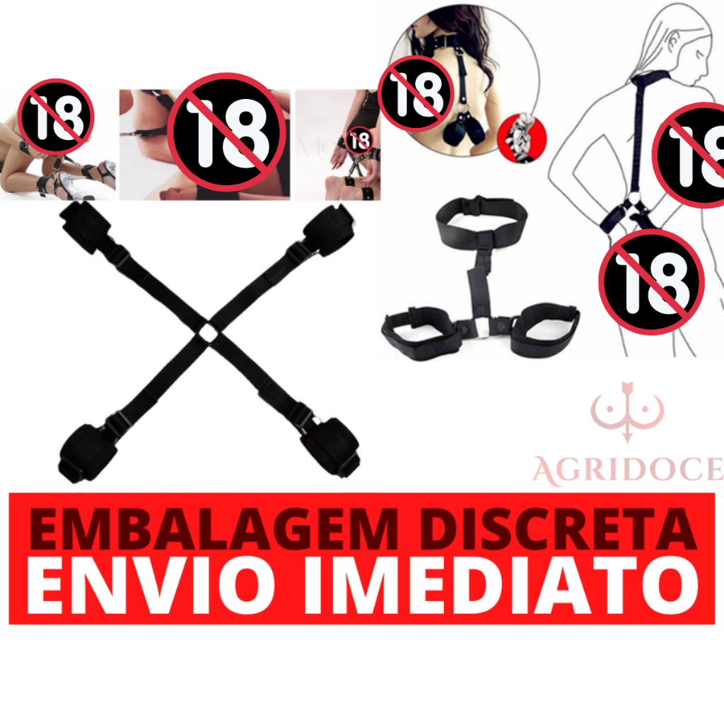 Kit BDSM Separador em X mãos e pernas imobilização e Separador flexível de velcro bondage submissão