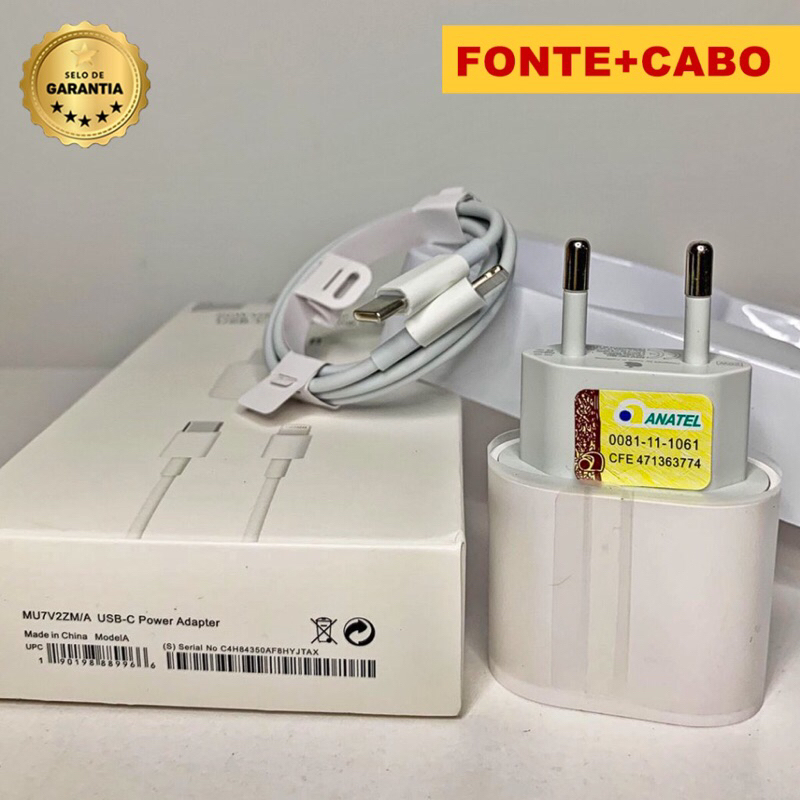 Kit Carregador Para iPhone Fonte + Cabo 20w PD Turbo Rapido Tipo C Lightning