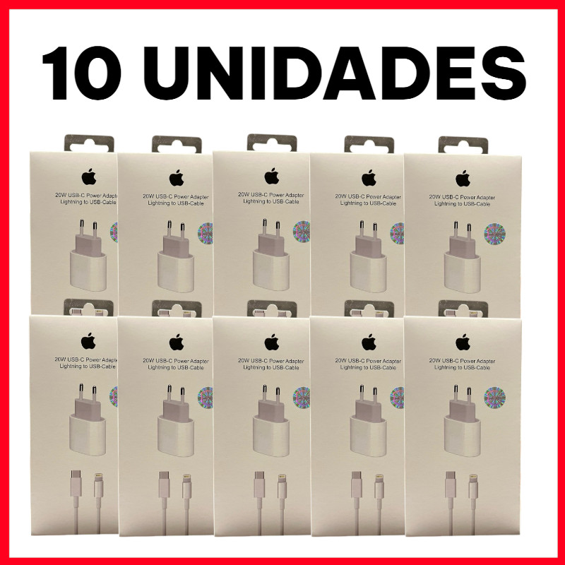 Kit 10 pcs Carregador iPhone Turbo 20W Fonte + Cabo USB-C Lightning Rápido