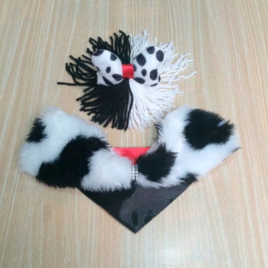 Conjunto Cruella de Vil Peruquinha e Gola tam.M com elástico Regulável petshop banho e tosa cão gato.