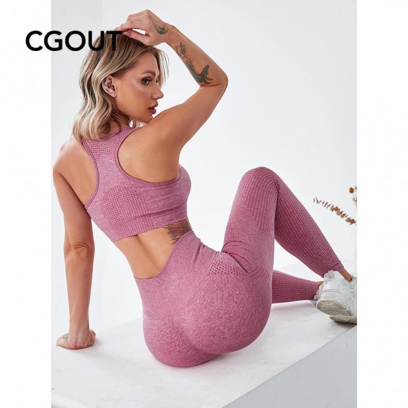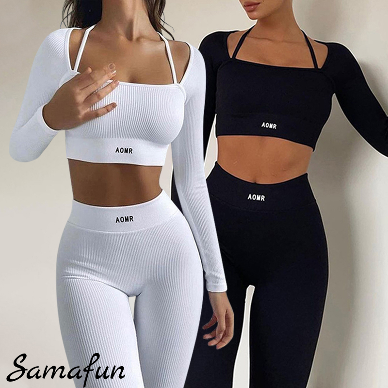 Roupa De Academia Feminina Conjunto Academia Feminino Conjunto Fitness Calça Fato Esportivo De Yoga Duas Peças De Cor Sólida Top Curto