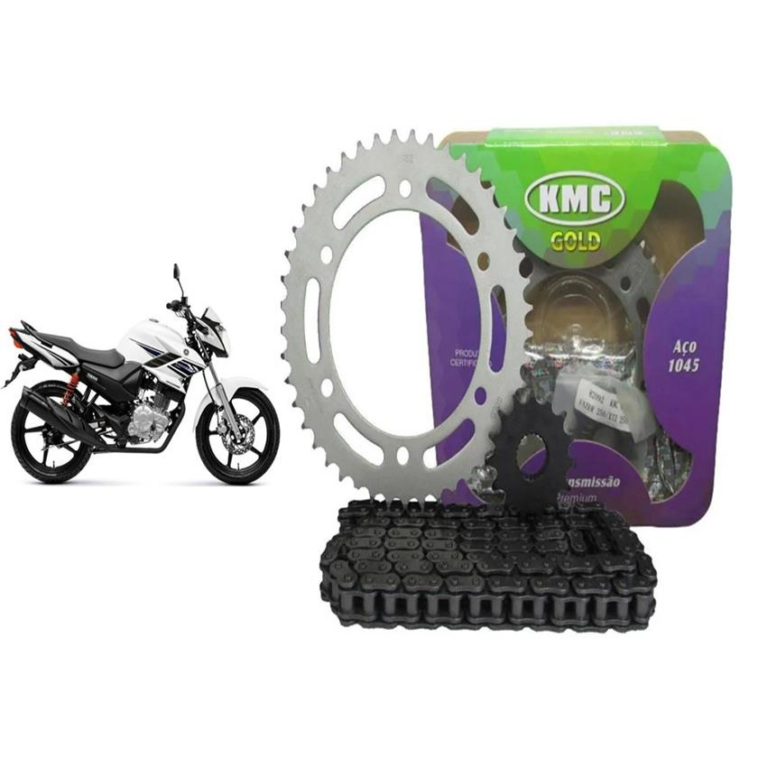 Kit Relação Transmissão Tração Yamaha Fazer 250 2005 2006 2007 2008 2009 2010 2011 2012 2013 2014 2015 2016 Com Retentor na Corrente Original KMC