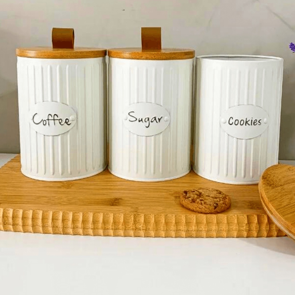 Lata Pote Porta Organidor de Cozinha Mantimentos Multiuso Café Açúcar em Metal Casa Escritório