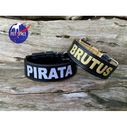 Coleiras Personalizada Petspace com nome bordado aço inox diversas raças médio, grande e gigante porte