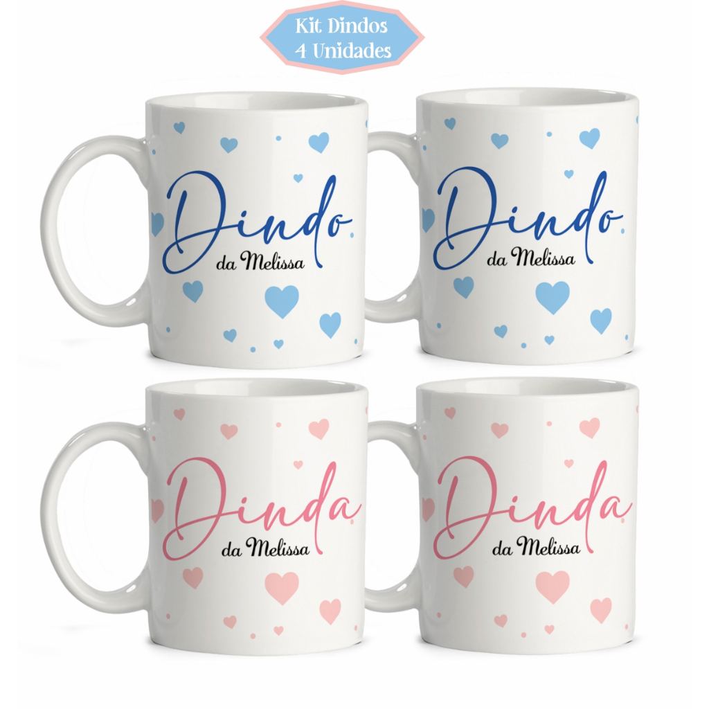 Kit 4 Caneca Personalizada Dindos Madrinha Padrinho de batismo Dindo Dinda