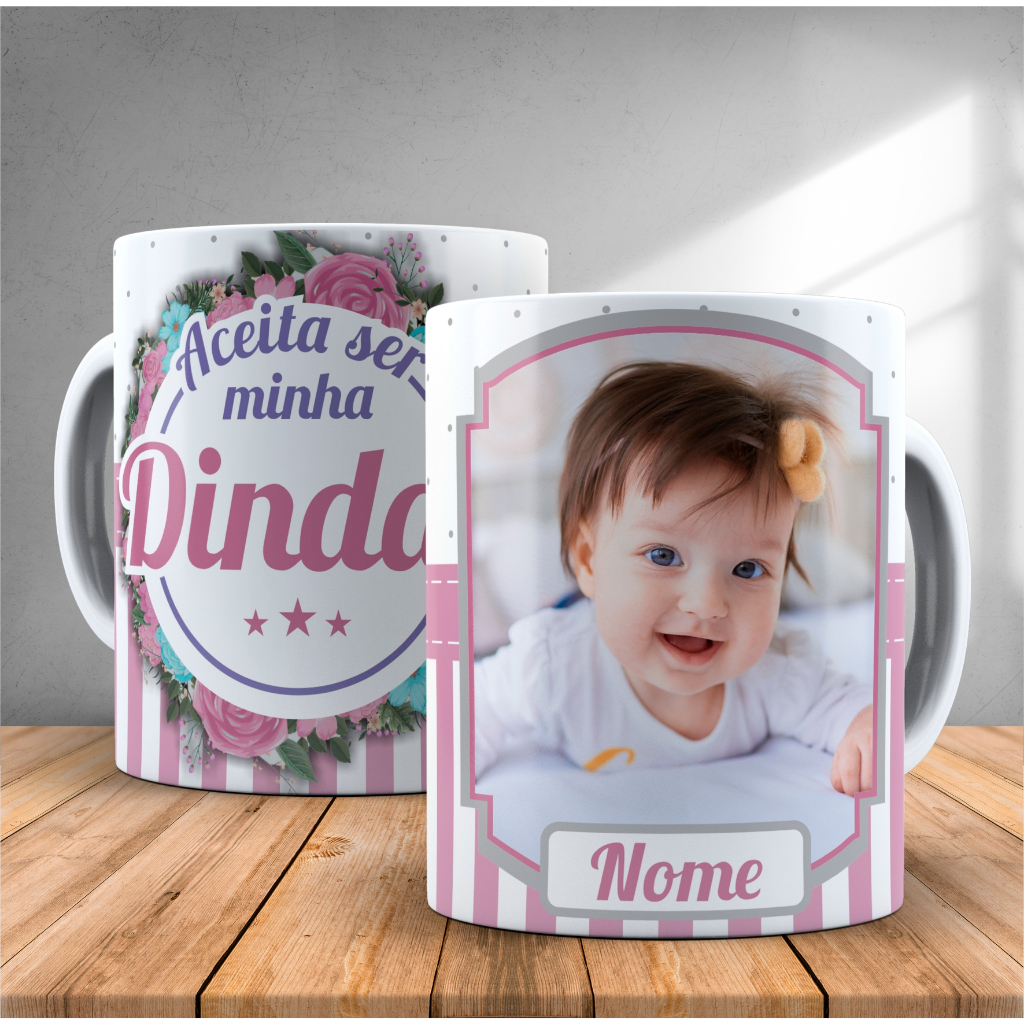Caneca Dinda e Dindo Personalizada Com Nome Para Presente Convite Madrinha e Padrinho De Batismo